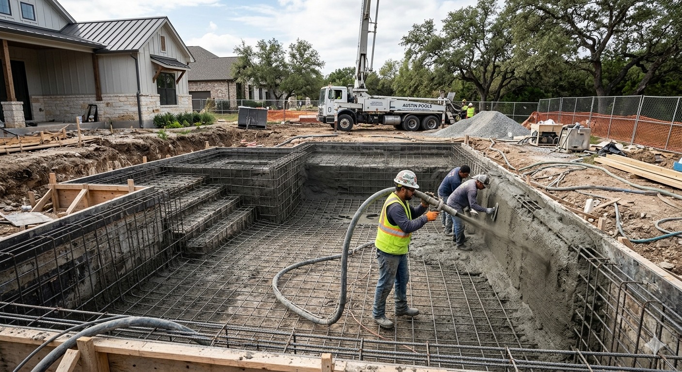 Typically, a standard private swimming pool takes between 4 to 8 weeks to complete once permits are approved. This includes the swimming pool construction steps of excavation, shuttering, MEP installation, tiling, and commissioning.